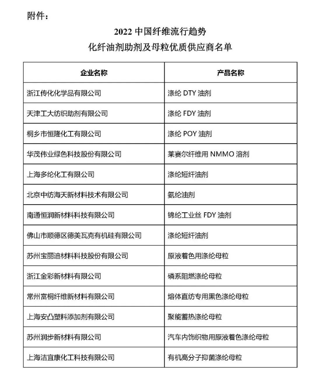 南通恒潤新材料科技有限公司被評選為化纖油劑優質供應商
